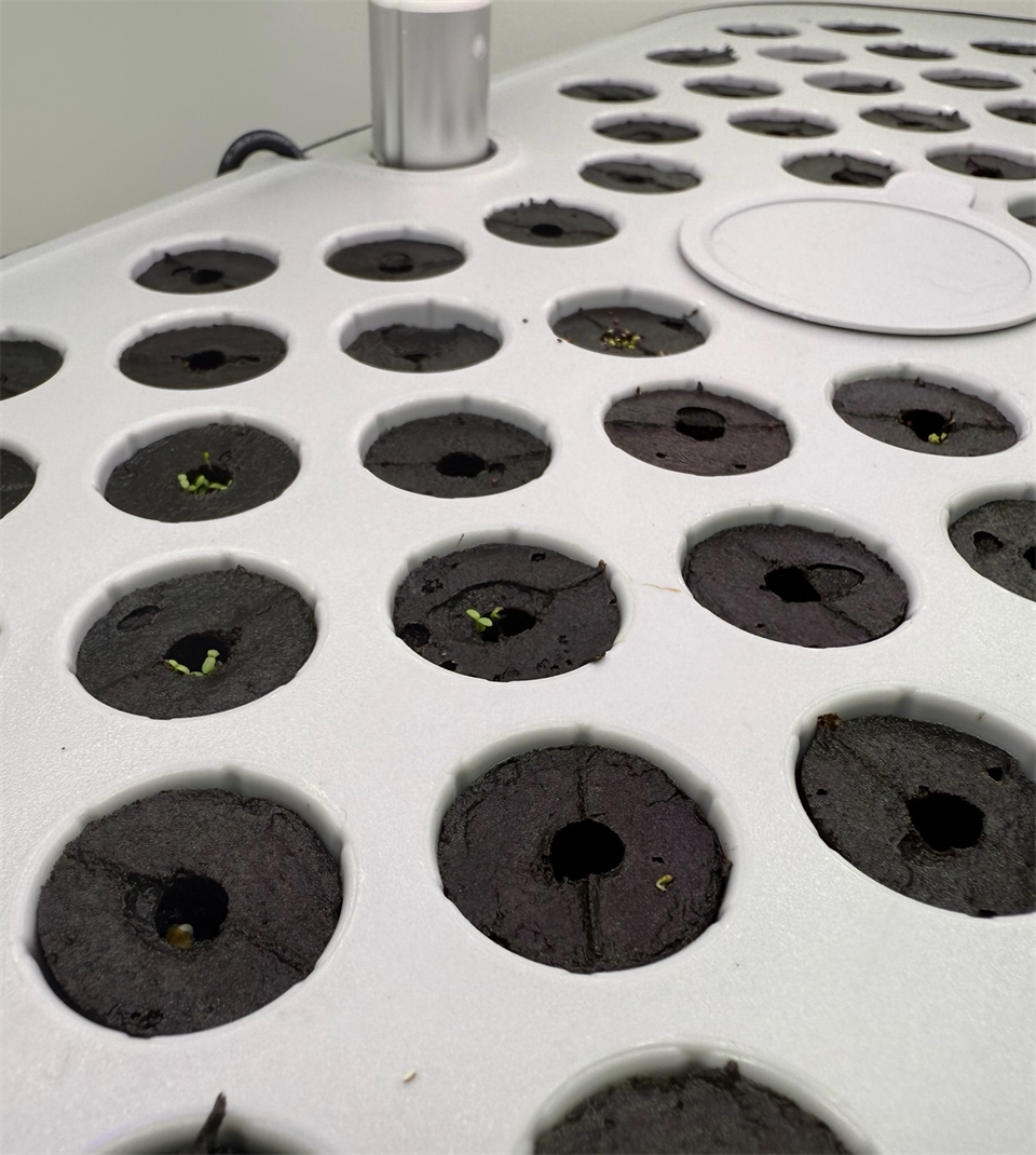Strooi de zaden in de holte van de pluggen (2-5 stuks), laat ze rustig kiemen en volg de groei volgens de oogsttijd. En dan… genieten van de luxe van vers.