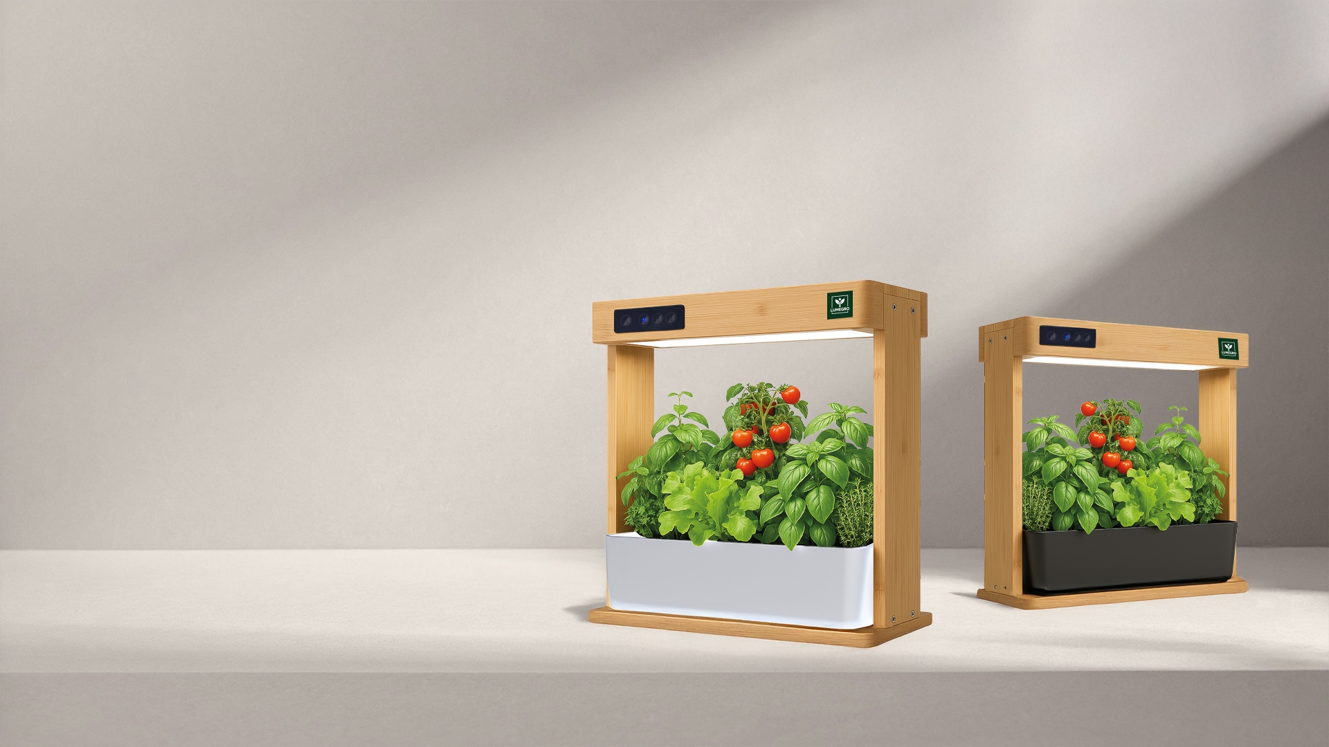 Luxe materialen, warm bamboe en stille werking. Een moderne binnen moestuin die niet alleen functioneel is, maar ook een mooie toevoeging aan je keuken of woonkamer.